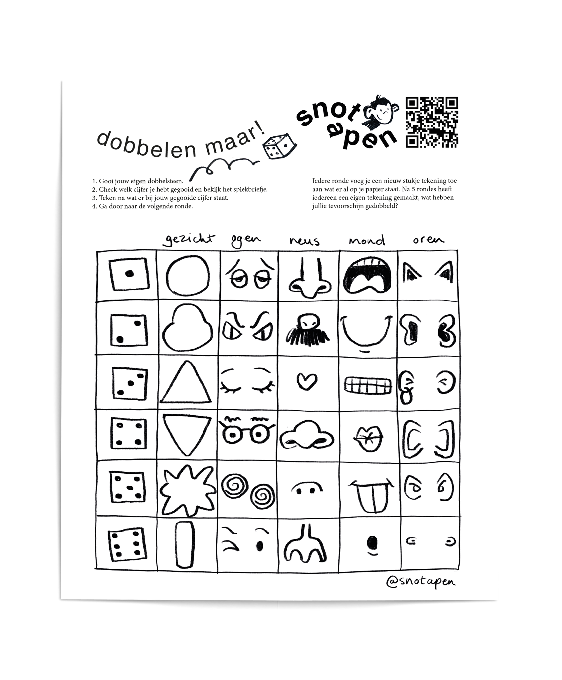 Tekenroulette - Gezichten / Unicorns / Monsters / Waggies (Printbare download)